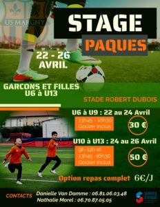 L'US Margny organise un stage de Pâques du lundi 22 avril au vendredi 26 avril, stade Robert-Dubois à Margny-lès-Compiègne