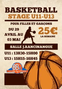 Le Basket-ball La Croix organise un stage pour les U11- U13 du lundi 29 avril au vendredi 3 mai de 13h30 à 16h45, salle J. Rancinangue à La Croix Saint-Ouen
