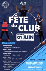 Fête du club avec l'AFC samedi 1er juin de 9h30 à 21h00, stade Paul Cosyns à Compiègne