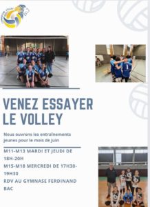 Venez essayer le volley avec Compiègne volley pour les M15-M18, mercredi 12 juin de 17h30 à 19h30, gymnase Ferdinand Bac à Compiègne