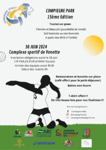 Compiègne volley organise la 15ème édition de Compiègne park dimanche 30 juin à partir de 9 heures, complexe sportif de Venette.