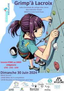 Lacroix escalade organise une compétition dimanche 30 juin à partir de 10 heures, salle d'escalede du collège Jules Vernes, rue Gabrielle Chanel à La Croix Saint-Ouen