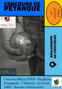 Compiègne pétanque organise un concours de pétanque dimanche 28 juillet à 14 heures, au boulodrome de Compiègne
