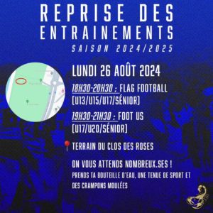 Reprise des entraînements pour les Scorpions de Compiègne lundi 26 août à 18h30, stade du Clos des roses à Compiègne