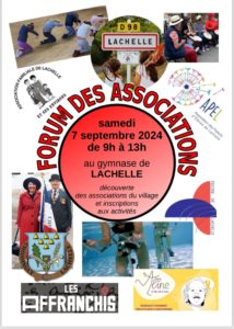 Forum des associations de Lachelle samedi 7 septembre de 9 heures à 13 heures, au gymnase de Lachelle
