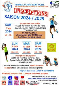 Inscriptions au Tennis La Croix Saint-Ouen lundi 9 septembre de 18h00 à 20h00, rue des entrepreneurs à La Croix Saint-Ouen
