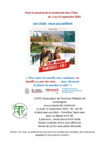 L'ATPC vous propose une randonnée jeudi 12 septembre. Rendez-vous à 8h45 à Saint-Jean-aux-Bois