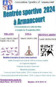 Rentrée sportive avec l'Association sportive d'Armancourt lundi 16 septembre à la salle des fêtes d'Armancourt