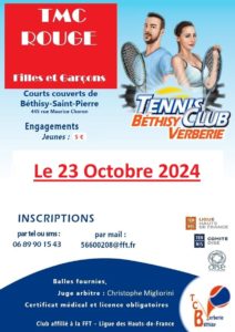 Le Tennis club Béthisy-Verberie organise un TMC Rouge mercredi 23 octobre, aux courts couverts 445 rue Maurice CHoron à Béthisy-saint-Pierre