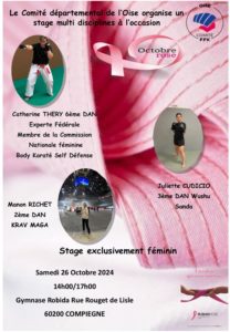 Dans le cadre d'Octobre rose, les Arts martiaux compiégnois et le Comité départemental de l'Oise organisent un stage multi-disciplines exclusivement féminin, samedi 26 octobre de 14h00 à 17h00, gymnase Robida…