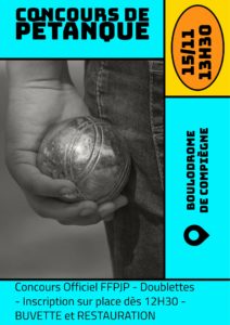 Compiègne pétanque organise un concours de pétanque vendredi 15 novembre au boulodrome de Compiègne à 13h30