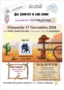 Dans le cadre du Téléthon, l'ADQB organise un bal country dimanche 17 novembre à partir de 14 heures, salle Saint-Nicolas à Compiègne