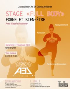 As en dance organise un stage "Full body" , à partir de 15 ans, dimanche 17 novembre de 10 heures à 12 heures, maison des sports de Venette.