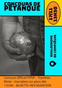 Compiègne pétanque organise un concours de pétanque dimanche 17 novembre à 13h30 au boulodrome de Compiègne