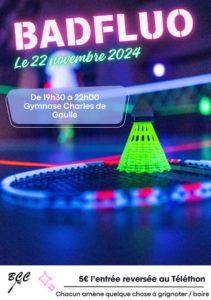 Dans le cadre du Téléthon, le Badminton club compiégnois organise un Bad fluo vendredi 22 novembre de 19h30 à 22h00, gymnase Charles de Gaulle à Compiègne.