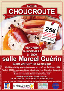 Soirée choucroute au profit du Téléthon vendredi 29 novembre à 19 heures, salle Marcel Guérin à Margny-lès-Compiègne