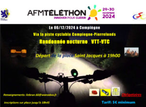 Dans le cadre du Téléthon, Compiègne sports cyclistes organise une rando nocturne vendredi 6 décembre à 19h00 place Saint-Jacques à Compiègne