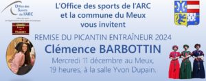Réception du Picantin Entraineur mercredi 11 décembre à 19 heures à la salle des fêtes Yvon Dupain au Meux