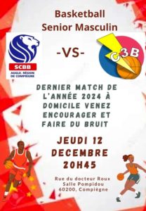 Le SCBB reçoit C3B jeudi 12 décembre à 20h45, gymnase Pompidou à Compiègne