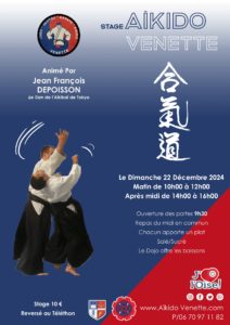 Dans le cadre du Téléthon, le Judo jujitsu Venette organise un stage d'Aikido dimanche 22 décembre de 10h00 à 16h00, maison des sports de Venette.