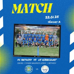 Le FC Béthisy reçoit l'US Ribécourt mercredi 22 janvier à 19h30 stade Maurice Leroy à Béthisy-Saint-Pierre.
