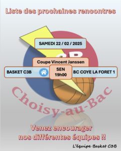 Le C3B reçoit BC Coye la forêt samedi 22 février à 19 heures, salle des Linières à Choisy-au-Bac