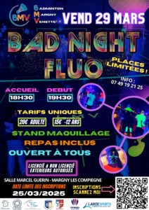 Le Badminton Margny-Venette organise un bad night fluo samedi 29 mars à partir de 18h30, salle Marcel Guerin à Margny-lès-Compiègne