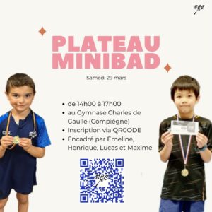 Le Badminton club compiégnois organise un plateau minibad samedi 29 mars de 14h00 à 17h00, gymnase Charles-de-Gaulle à Compiègne