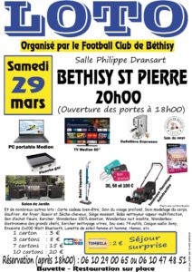 Le FC Béthisy organise un loto samedi 29 mars à partir de 20 heures, salle Dransart à Béthisy-Saint-Pierre
