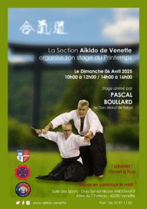 Le Judo jujitsu Venette organise un stage d'aïkido dimanche 6 avril de 10h00 à 12h00 et de 14h00 à 16h00, à la maison des sports de Venette.