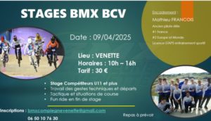 Le BMX Compiègne-Venette organise un stage mercredi 9 avril de 10h00 à 16h00, piste de BMX à Venette