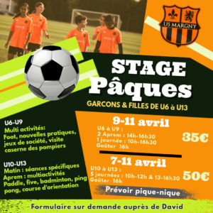 L'US Margny organise un stage de Pâques pour les U6 à U13 du lundi 7 au vendredi 11 avril, stade Robert-Dubois à Margny-lès-Compiègne