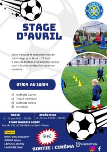 Le FC Béthisy organise un stage du lundi 7 au jeudi 10 avril de 9h00 à 16h00, stade Maurice-Leroy à Béthisy-Saint-Pierre