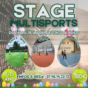 Notre partenaire Le stadium organise un stage multisports pour les 7-13 ans du lundi 14 au vendredi 18 avril, de 13h30 à 16h30