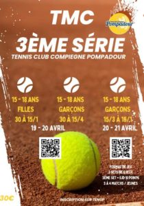 Le Tennis club Compiègne Pompadour organise un TMC 15-18 ans les 19, 20 et 21 avril