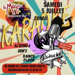Soirée Karaoké chez notre partenaire Le Méga samedi 5 juillet à partir de 20 heures, 45 avenue de l'Europe à Venette