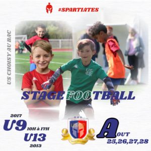 L'US Choisy-au-Bac organise un stage de foot pour les U9 à U13, de 10 herues à 17 heures, du lundi 25 au jeudi 28 août, stade du Maubon à Choisy-au-Bac.