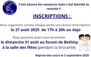 Inscriptions au Judo club Béthisy-Saint-Pierre mercredi 27 août de 17 heures à 20 heures, au dojo, avenue de la gare à Béthisy-Saint-Pierre