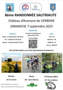 Le Cyclo club Verberie organise la 8ème randonnée sautriaute dimanche 7 septembre, dès 8 heures, château d'Aramont à Verberie.