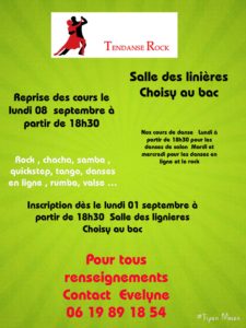 Reprise des cours avec Tendanse rock lundi 8 septembre à 18h30, salle des linières à Choisy-au-Bac