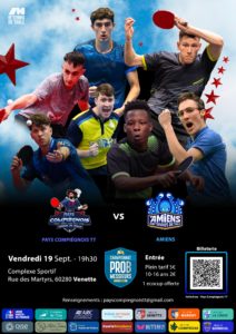 Le Pays compiégnois tennis de table reçoit Amiens tennis de table vendredi 19 septembre à 19h30, maison des sports de Venette.