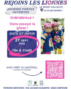 Le Hockey club compiégnois organise une journée portes ouvertes spécial filles samedi 27 septembre de 10 heures à 11h45, patinoire ZAC de Mercières à Compiègne
