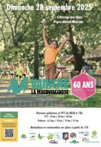 Vaincre la mucoviscidose dimanche 28 septembre de 8h30 à 12 heures, parc de la mairie de Choisy-au-Bac
