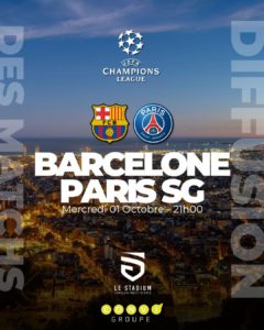 Diffusion du match Barcelone-Paris SG mercredi 1 octobre à 21 heures au Stadium, 43 route de Choisy à Compiègne