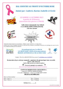 Dans le cadre d'Octobre rose, Settle down country organise un bal country samedi 11 octobre à partir de 20 heures, salle Guy Schott à La Croix Saint-Ouen