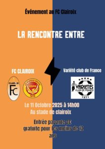 Le FC Clairoix reçoit le Variété club de France, samedi 11 octobre à 14 heures, stade de football, rue du marais à Clairoix