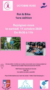 Dans le cadre d'Octobre rose, 1ère édition de Rol & bike samedi 11 octobre de 8h30 à 11 heures, à la maison des sports de Venette.