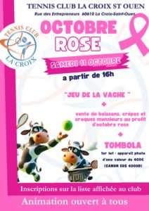 Dans le cadre d'Octobre rose le Tennis club La Croix Saint-Ouen organise, samedi 11 octobre à partir de 16 heures, un jeu et une tombola. Rendez-vous au club, rue des…