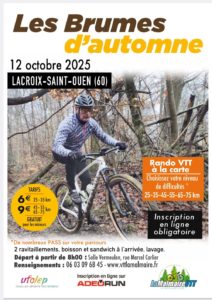 La Malmaire VTT organise les Brumes d'automne dimanche 12 octobre, à parir de 8 heures. Rendez-vous salle Vermeulen, rue Marcel Carlier à La Croix Saint-Ouen