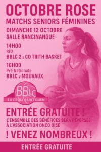 Matchs séniors féminines - Octobre rose - Dimanche 12 octobre à partir de 14 heures, salle J. Rancinangue à La Croix Saint-Ouen